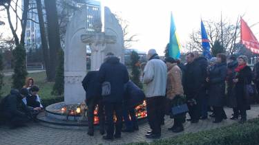 Люди прийшли до площі Василя Стуса, поклали квіти, запалили свічки та вшанували усіх загиблих від голоду українців хвилиною мовчання.