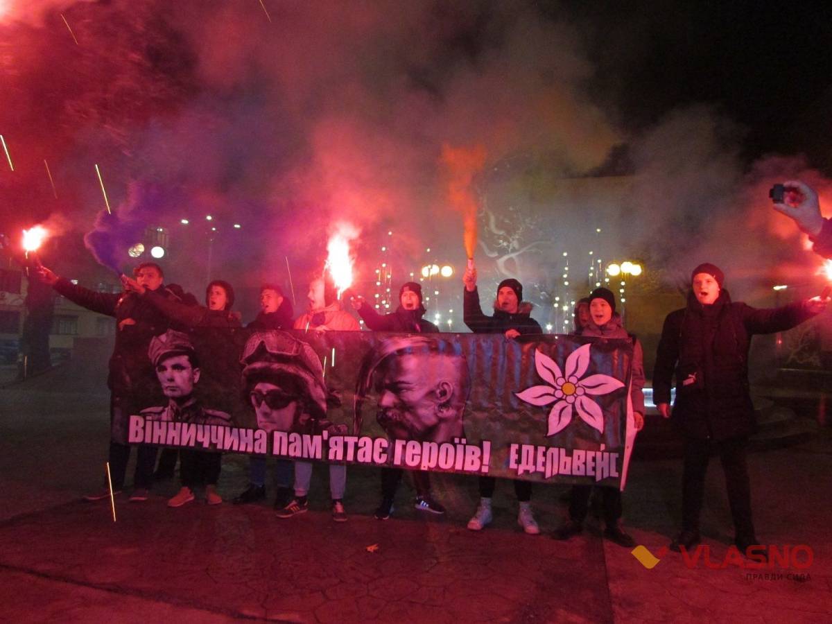 В пам'ять про ті події юнаки запалили файєри, а загиблих бійців вшанували хвилиною мовчання.