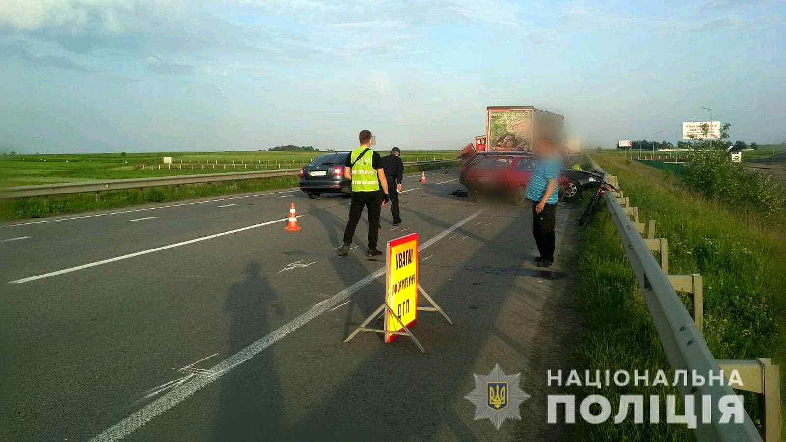 Аварія сталася близько 18:25. Відомо, що кермом «Mercedes-Benz Actros» був 26-річний житель Вінницької області, він їхав у бік Києва. Чоловік допустив наїзд на дві автівки «Audi А6» та «Chevrolet Aveo». Автомобіль «Audi А6» відкинуло на зустрічну смугу руху, де відбулося зіткнення із автомобілем «ЗАЗ 11026» під керуванням 38-річного жителя Рівненського району.