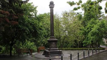 Коли ще у сквері Козицького створювали Меморіал Слави у 1974 році колону демонтували та перевезли до села Павлівка Калинівського району. У 2015 місцеві краєзнавці віднайшли колону, в влітку 2016-го місцеві історики повернули колону до обласного центру.